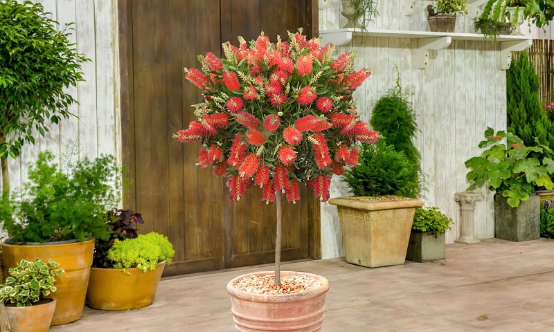 • گیاهی زینتی و همیشه‌سبز با گل‌هایی خاص و استوانه‌ای به رنگ قرمز درخشان که شبیه برس یا شیشه‌شور هستند؛ بسیار چشمگیر و مناسب فضای سبز و ویلا