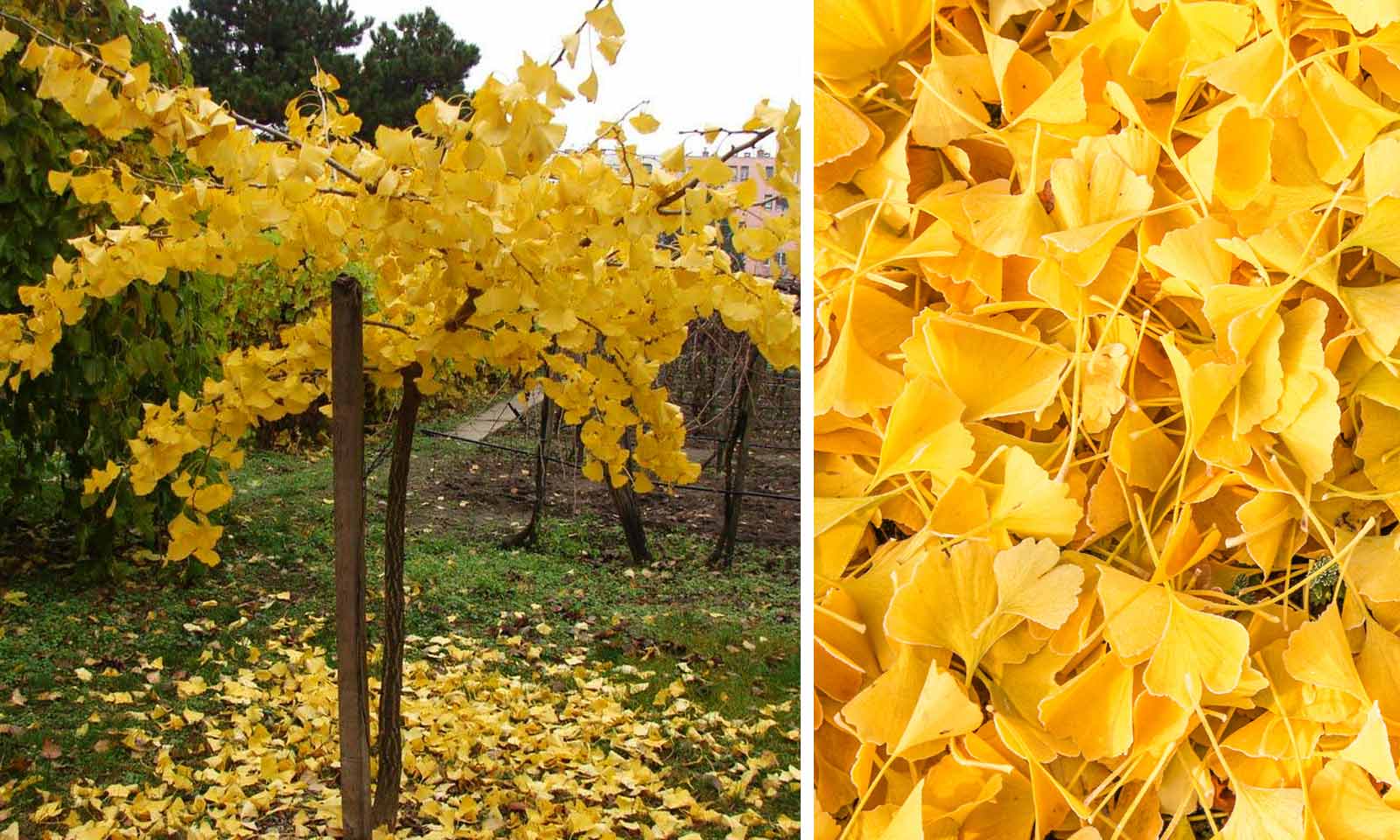 درخت ژینکو در پاییز زرق و برق دار و با برگهای طلایی رنگ بسیار چشمگیر و باشکوه است. در پاییز وقتی این درخت با برگهای بادبزنی طلایی رنگ با نور پسزمینه خورشید در اوایل صبح یا اواخر بعد ازظهر غرق نور میشود، منظرهای دیدنی میسازد که هر بینندهای را در برابر این رنگهای خیرهکننده شگفتزده میسازد.